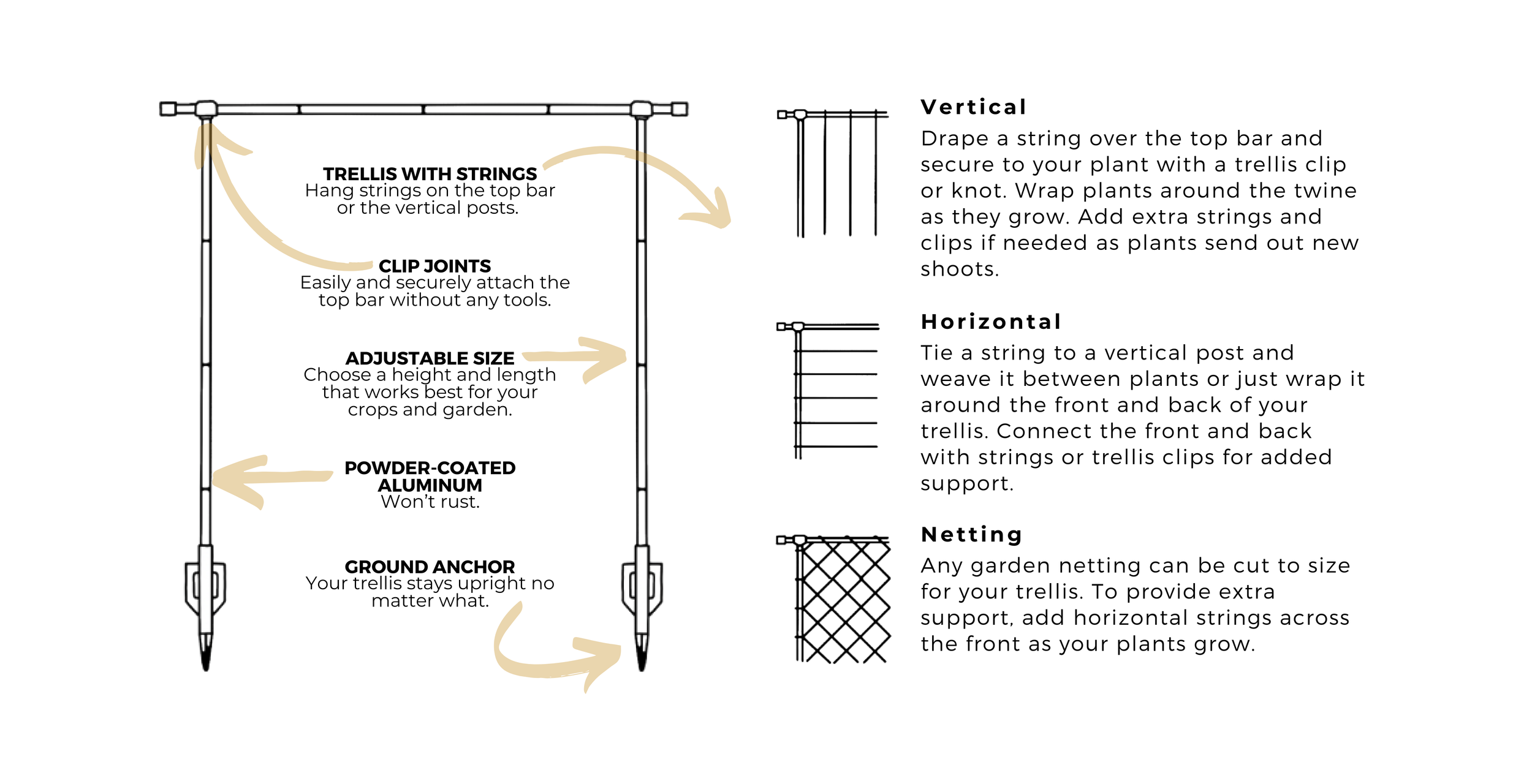 A surprising number of annual crops benefit from the support of a trellis. Because we love trellised crops and because we’ve been trialing a ton of varieties, we started carrying a selection of Renee’s Garden seeds in our shop! Here is a short list of some of our favorite crops and varieties to grow vertically in the garden and links to our store where you can find our favorite types:
