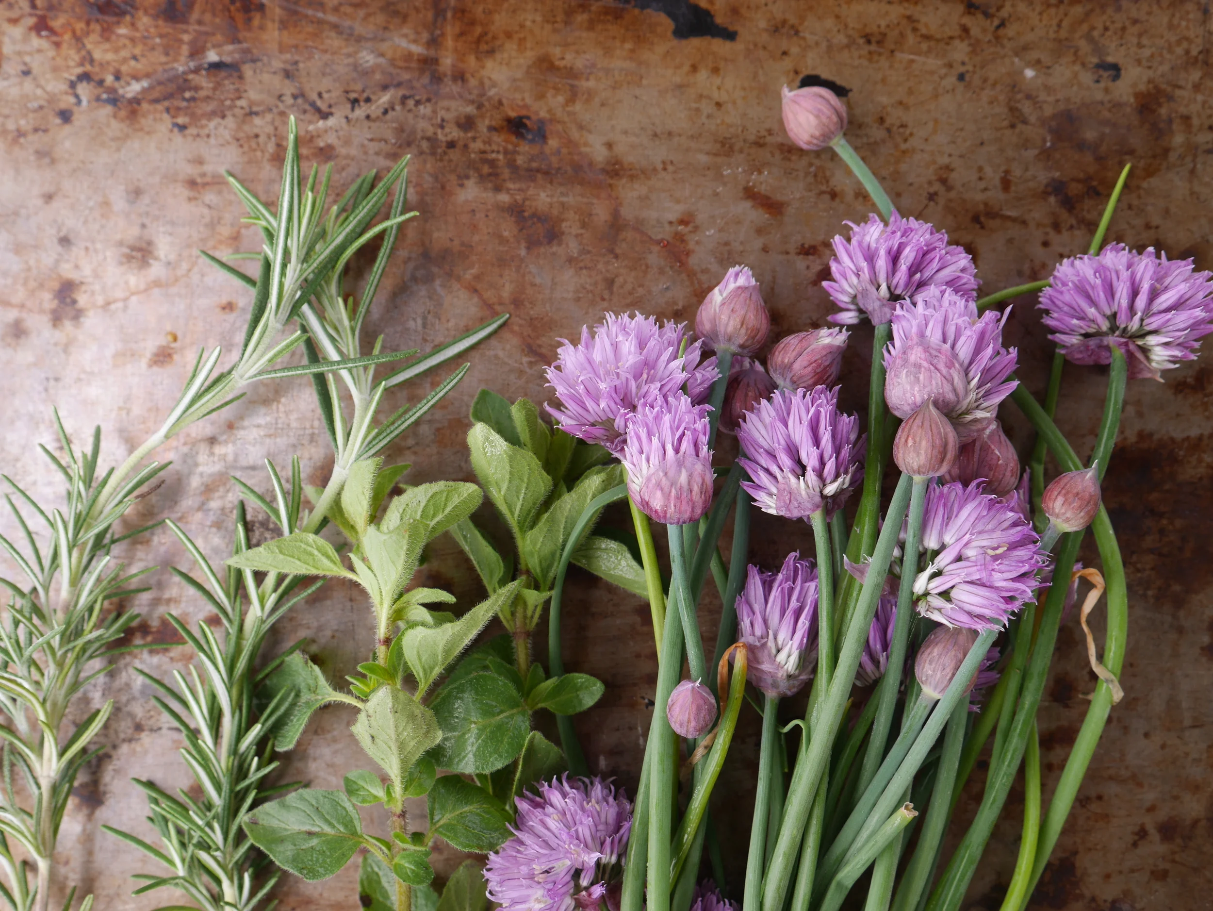 This recipe was inspired by the vibrant chive blossoms bursting into the scene. Because, seriously, who doesn't want to eat pizza with purple flowers on it?
